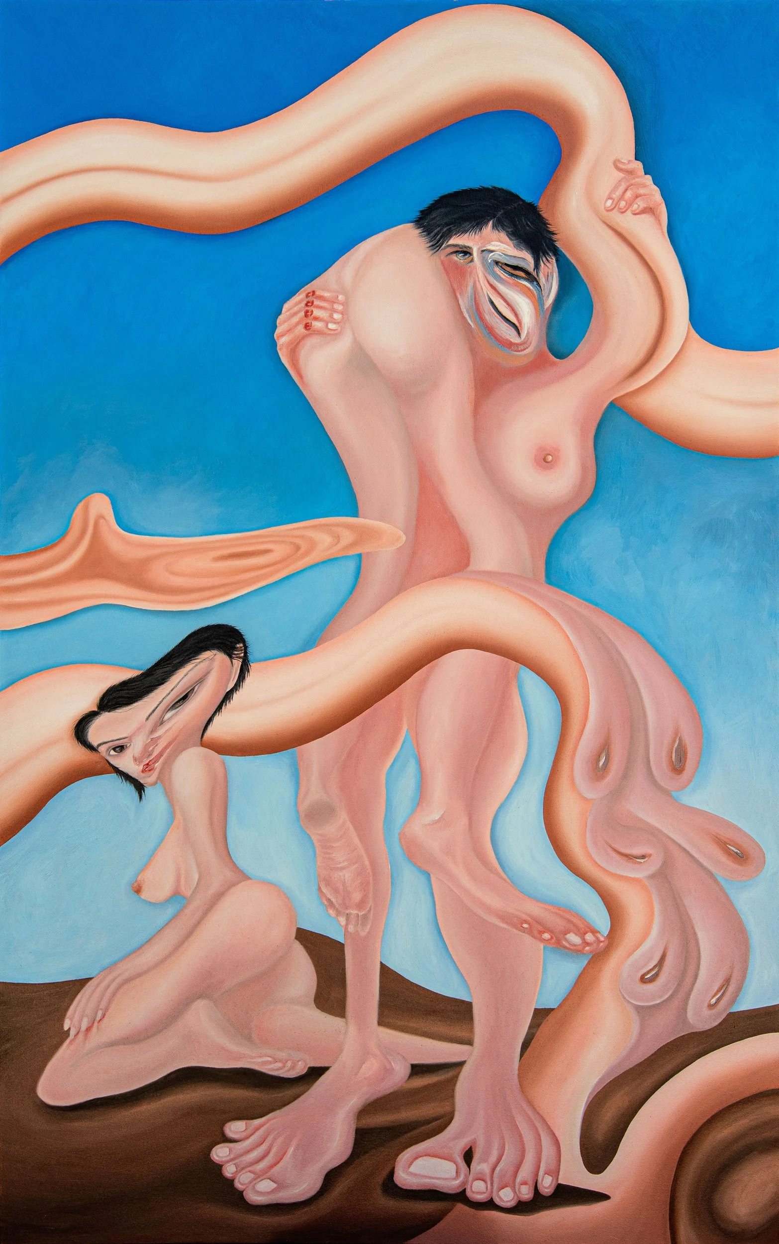 Intel Lastierre, Paradise of Terrestrial Pleasures, 2023, oil on canvas, 109” x 59”, image courtesy of the artist and DORF.